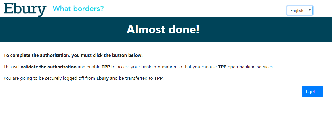 Before being redirected to the TPP App, the PSU will access a redirection screen with some context related to the given authorisation. This screen is slightly different for AIS and PIS.